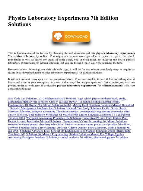 MJZ - Free PDF Physics laboratory experiments 7th edition solutions Paperback Google eBookstore